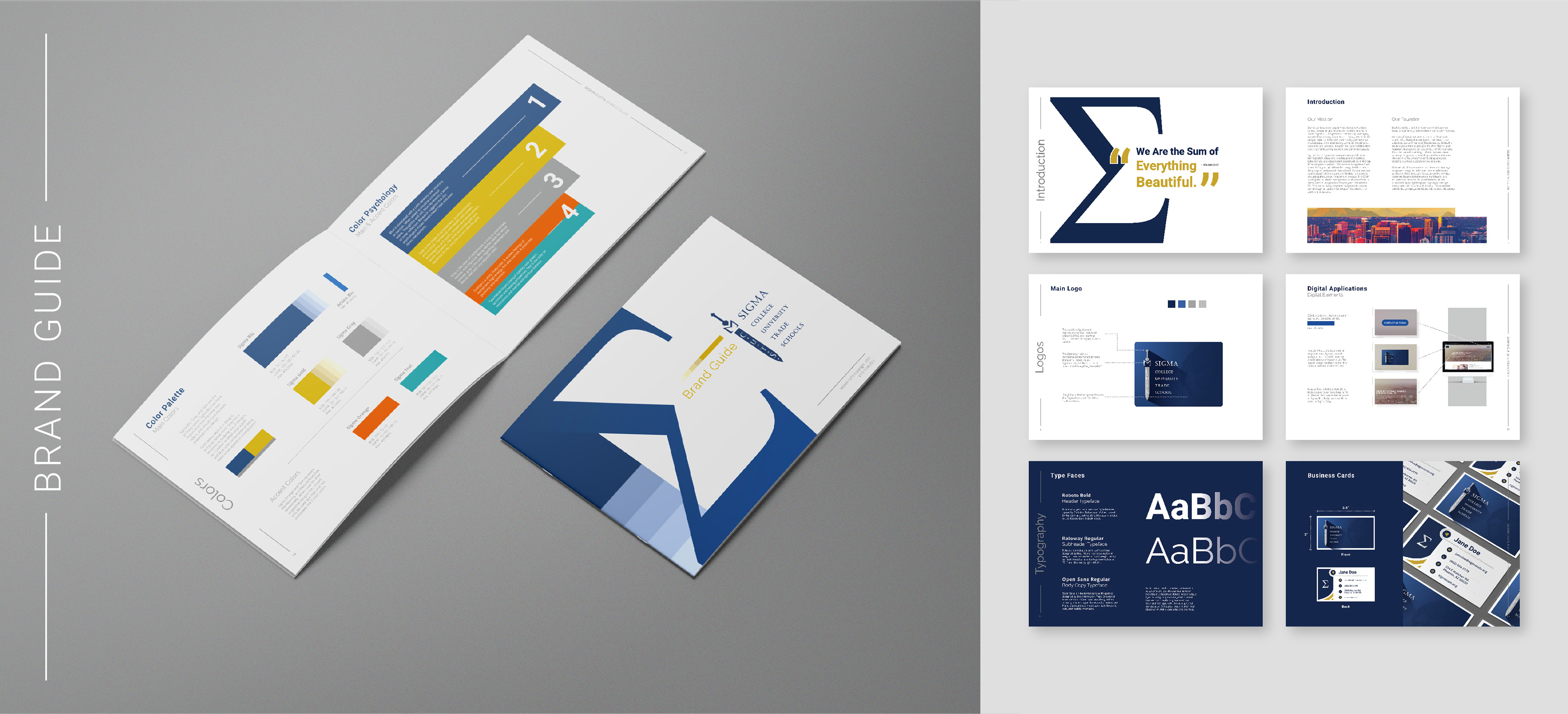 Along with digital branding there comes printed collateral of course. The trifold pictured above is a combined product of my favorite Sigma elements. In this design I feature our signature blue and yellow arch, our logos in clean white, and our curated imagery in interesting ways.